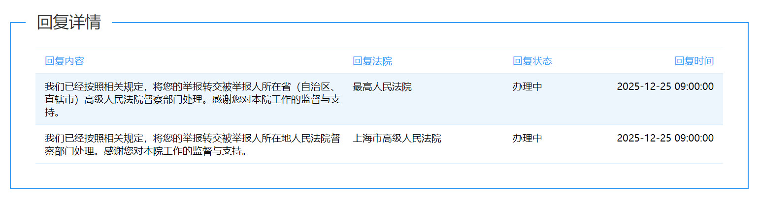 (2023)沪0105民初34997号 一、【事实】长宁法院邓鑫法官在无合议庭组织授权情况下、在无审判长祁晓栋授权情况下私自办案,两次非法主持证据交换。 二、【证据】 第一次证据交换时间:2023年12月18日; 第二次证据交换时间:2024年1月18日。 本案合议庭组成时间:2024年3月22日; 三、【明知】 邓鑫法官明知私自办案是违法的,所以在《笔录》及《判决书》中加以掩饰。 《笔录1》第1-2页,审(邓鑫):……,受合议庭委托,今天由审判员邓鑫主持双方进行证据交换,由书记员洪巧缘担任记录。 此时没有合议庭,更没有委托。明知违法、虚假陈述。邓鑫法官无审判长祁晓栋授权私自办案。 《笔录2》第1-2页,审(邓鑫):……,受合议庭委托,今天由审判员邓鑫主持双方进行第二次证据交换,…… 此时依然没有合议庭,合议庭也不可能委托。邓鑫法官无审判长祁晓栋授权私自办案。 《判决书》第1页:本院于2023年10月18日立案后,依法适用普通程序组成合议庭,分别于2023年12月18日、2024年1月18日进行了证据交换,于2024年3月29日公开开庭进行了审理。 为什么要说合议庭组成于证据交换之前——明知违法审案,掩盖事实真相。 四、【法律法规】 (一)《最高人民法院关于规范合议庭运行机制的意见》中指出,合议庭是人民法院的基本审判组织,合议庭审理案件时,合议庭其他成员应当根据审判长安排完成相应审判工作,这些工作包括“主持证据交换等庭前准备工作”。 (二)《人民法院工作人员处分条例》第五十条 违反规定私自办理案件的,给予警告、记过或者记大过处分;情节较重的,给予降级或者撤职处分;情节严重的,给予开除处分。 (三)《法官惩戒工作程序规定(试行)》第五条 认定法官是否违反审判职责,适用《最高人民法院关于完善人民法院司法责任制的若干意见》等有关规定。 (四)《最高人民法院关于完善人民法院司法责任制的若干意见》 26.有下列情形之一的,应当依纪依法追究相关人员的违法审判责任:(2)违反规定私自办案或者制造虚假案件的。 《法官法》第四十六条 法官有下列行为之一的,应当给予处分;构成犯罪的,依法追究刑事责任:(四)故意违反法律法规办理案件的。 控告人 :马宪春 131574123152025-12-18 【证据1】《证据交换笔录1》:20当时提交字数已满。